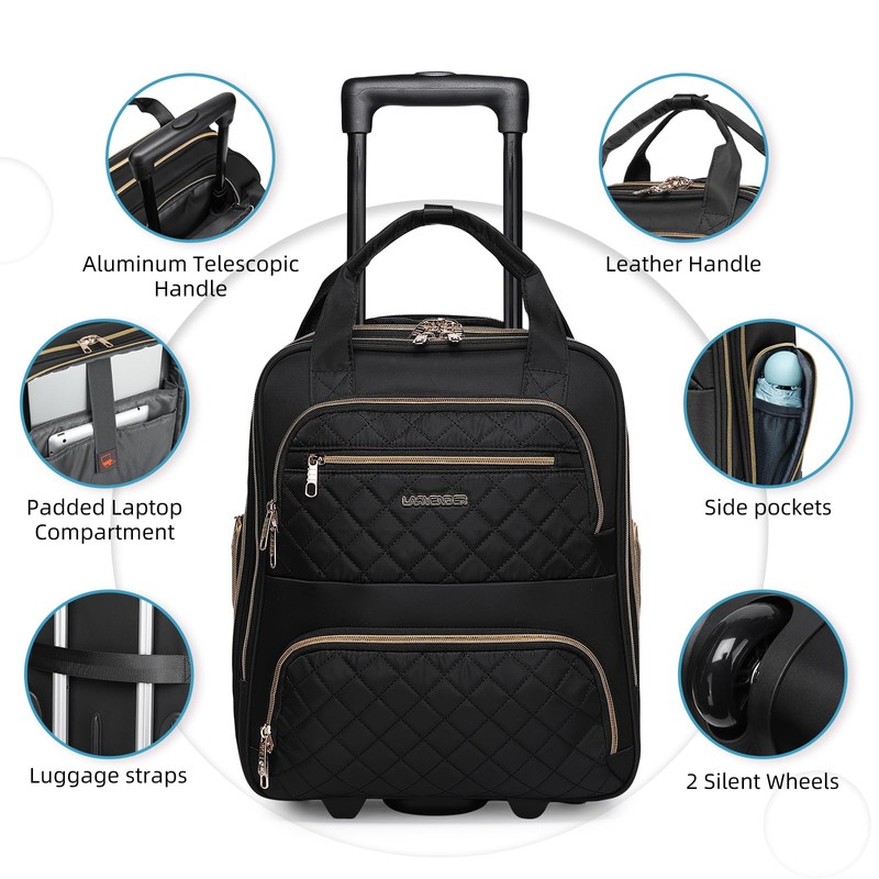- Sturdy Yet Ergonomic: Top with a resistant iron handle, this underseat roller bag provides effortless pulling and ergonomic comfort for frequent travelers. Back with a smart sleeve to attach atop a carry-on while boarding