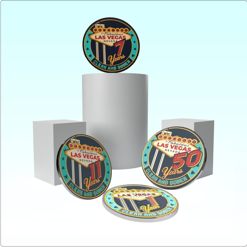 Las Vegas Recovery AA chip Available in Years 1-50 Sober Medallion for 12 Step Programs