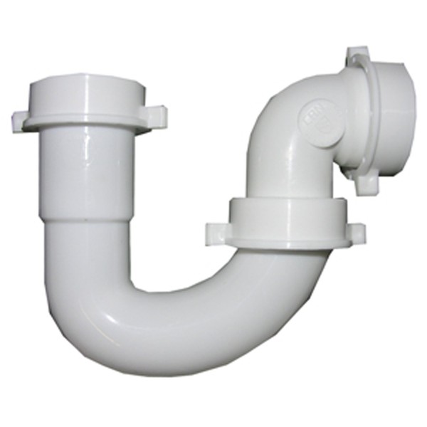 LASCO 03-4231 White Plastic Tubular, 1-1/2-Inch Repair J-Bend With Slip Joint Elbow, Includes Nuts And Washers. White plastic construction. 1-1/2-Inch outside diameter. Slip joint connection assembly to 1-1/4-Inch or 1-1/2-Inch O.D tube. Commonly used with kitchen, laundry, or bathroom sinks. For use as a lavatory/kitchen wall drain repair trap, with nuts. Includes 3 nuts and washers each for complete installation.