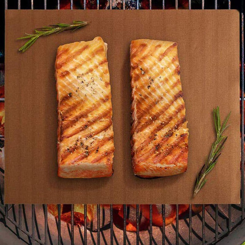 lasenersm 2 Pieces Grilling Mats BBQ Grill Mat Barbecue Grill Sheet Liners Grill Mat Baking Mats BBQ Grilling Mats BBQ Grilling Sheets, 15.75x13inch, Copper Color