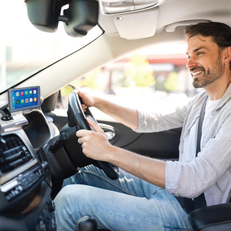 Laser 7-inch Portable Wireless CarPlay/Android Auto Touchscreen, Real-Time Navigation, Voice Control, Bluetooth and Wi-Fi, IPS Display - Supports Bluetooth Transmitter and Apple CarPlay Integration