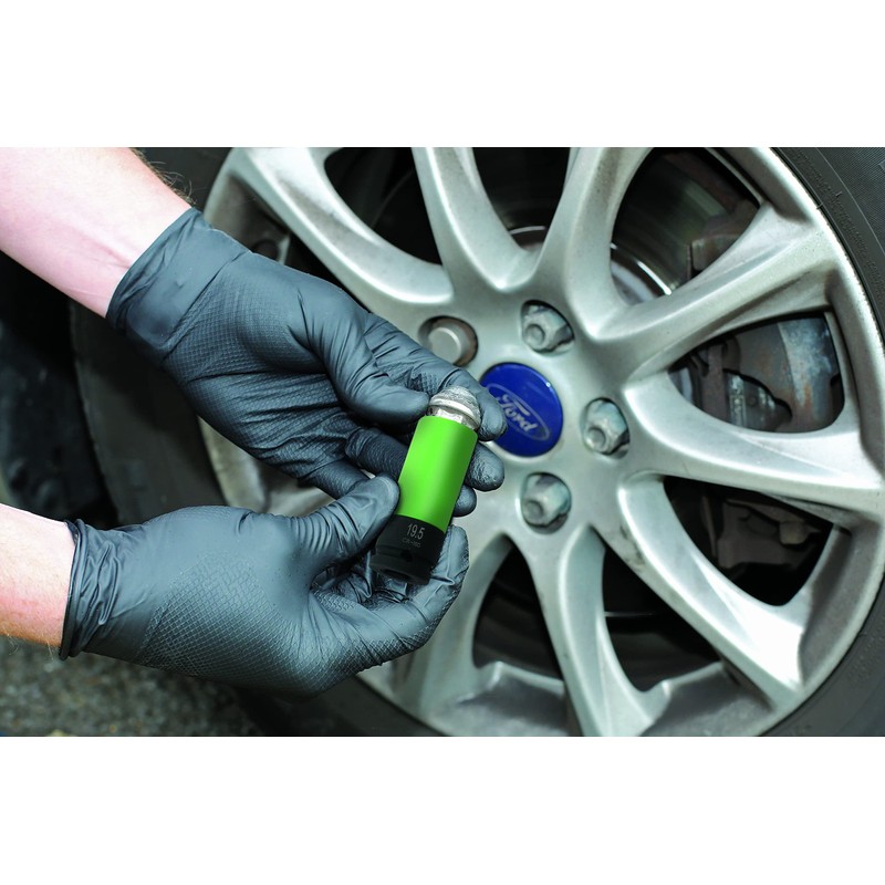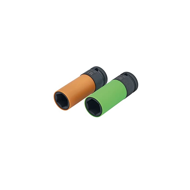 • Thin walled sockets with protective sleeve to prevent damage to alloy wheels.