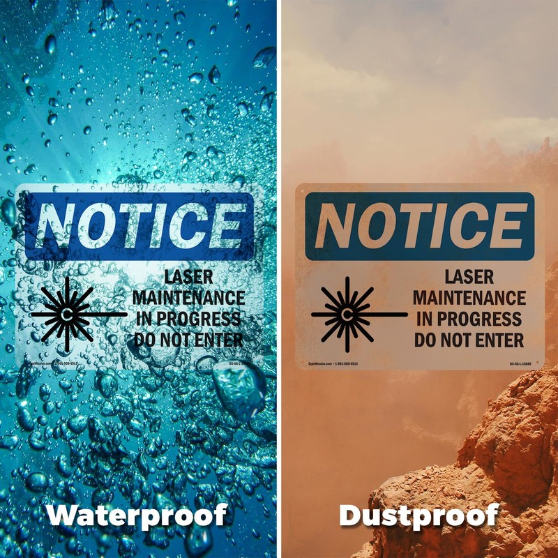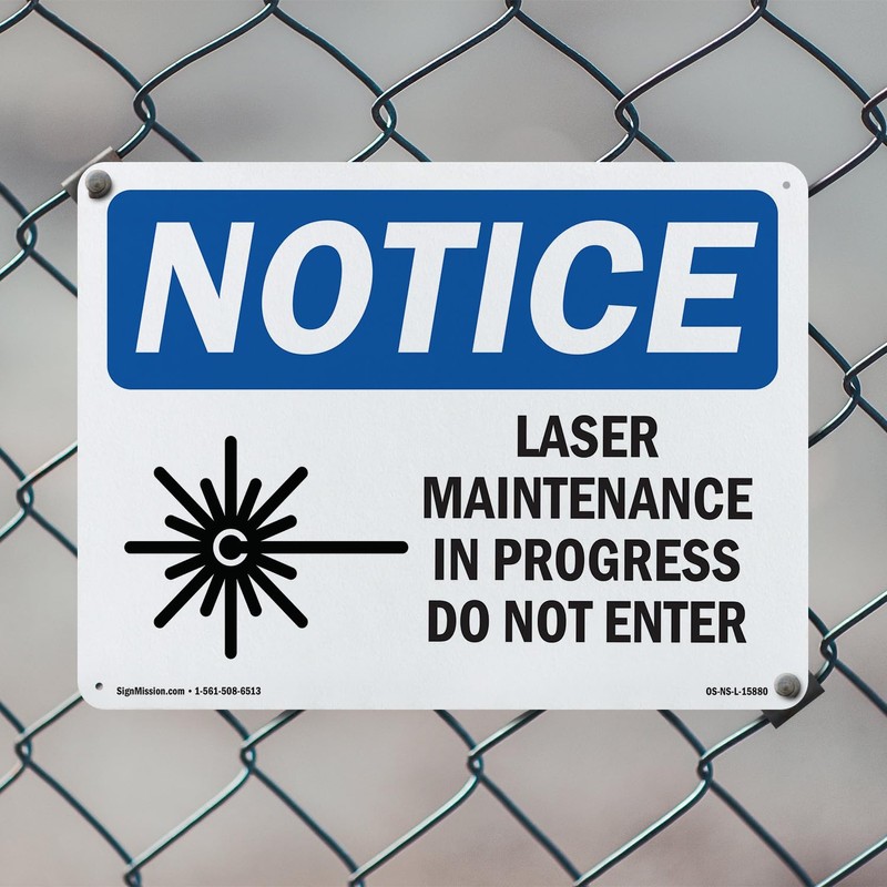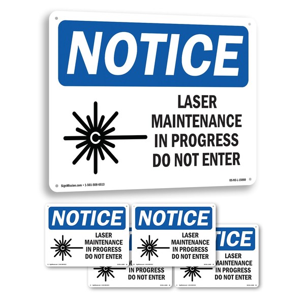 Laser Maintenance In Progress Do Not Enter OSHA Notice Rigid Plastic Sign 18 Inch x 12 Inch - 5 Pack
