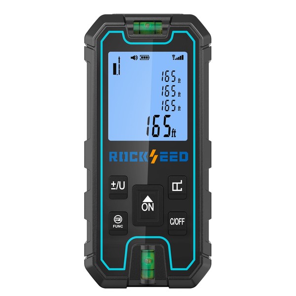 Laser Measure 50M, RockSeed Portable Accurate Laser Distance Meter, Digital Distance Measurement Tool with 2 Bubble Levels, Laser Distance Measure with m/in/ft/ft+in Conversion