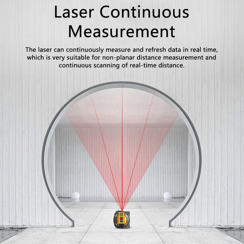 • Continuous laser measurement: This laser rangefinder tape measure can perform area measurements, volume measurements and Pythagorean measurements. Its laser can continuously measure and update data in real time, which is very suitable for non-planar distance measurement and continuous scanning of real-time distance.