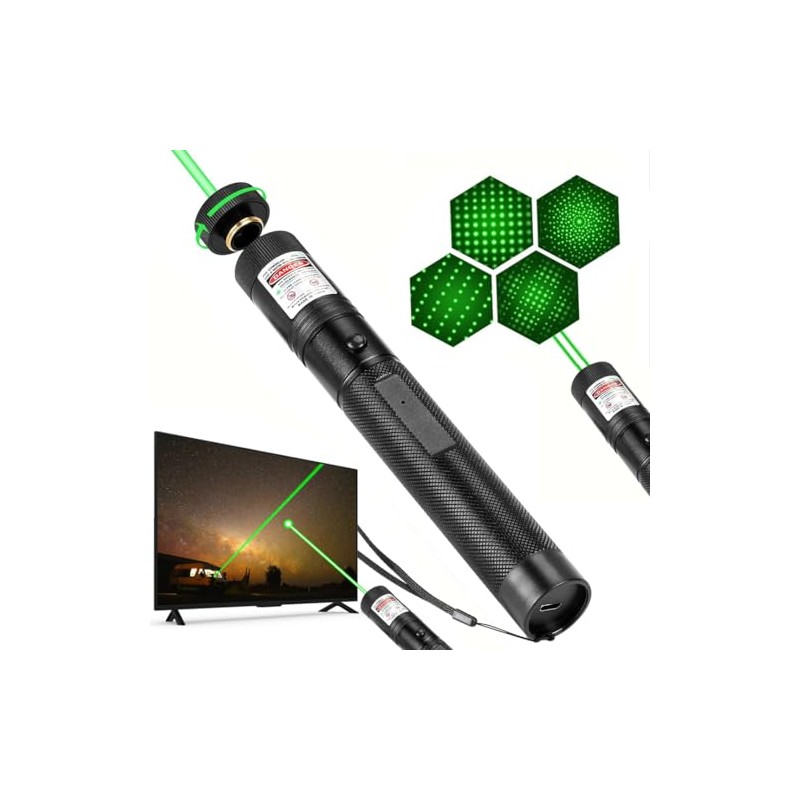 • [Precision Focus] Our laser pointer has high power, and rotating the silver star cap can obtain multiple light patterns. Removing the star cap can obtain focused laser, making the visible distance even farther.