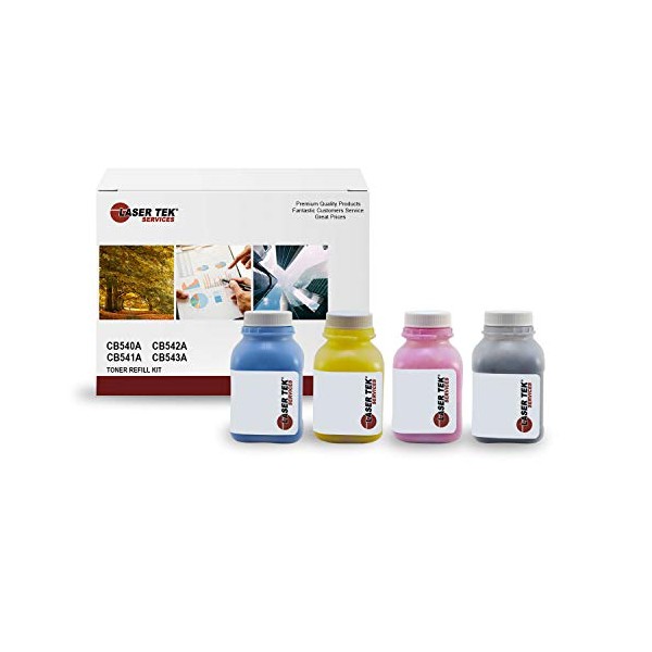 Laser Tek Services Compatible HP 125A CB540A CB541A CB542A CB543A Toner Refill Kit Replacement for HP Color Laserjet CP1210 CP1215 CM1300 Printers (Black, Cyan, Magenta, Yellow, 4-Pack)