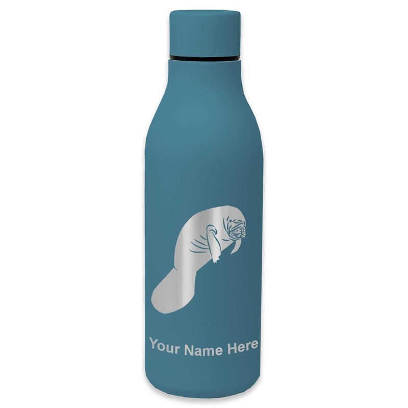 LaserGram Double Wall Stainless Steel Water Bottle, Manatee, Personalized Engraving Included (Slate Blue)