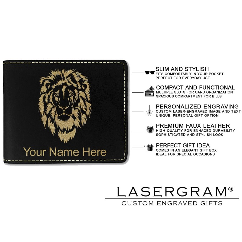 LaserGram Faux Leather Bi-Fold Wallet, Horse Head 1, Personalized Engraving Included (Black with Gold)