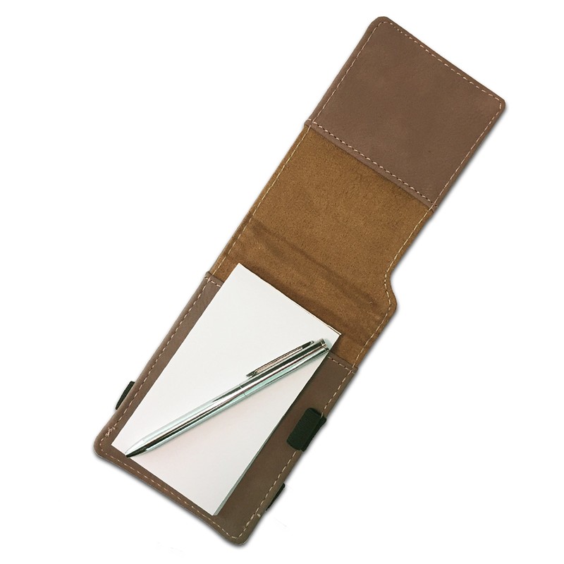 - Padfolio dimensions: 3.25 inches X 4.5 inches. Paper Pad dimensions: 2.25 inches X 4.00 inches. Comes with 50 sheets of paper and a mini ballpoint pen.