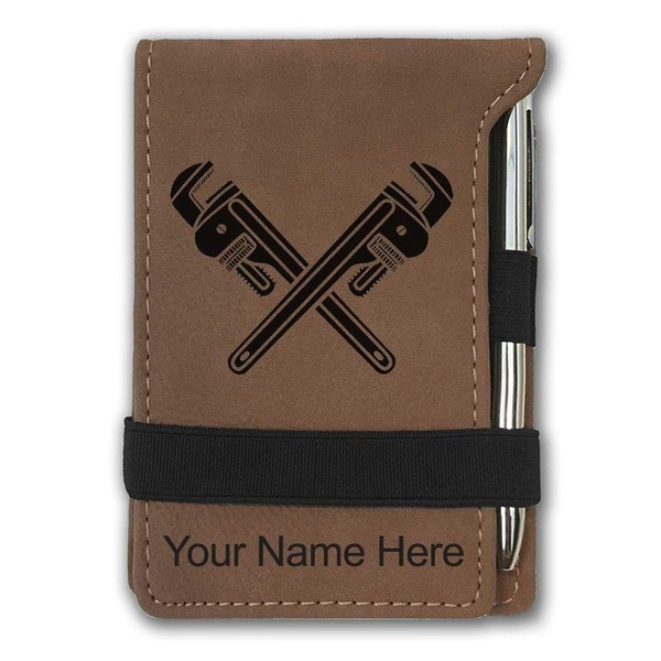 LaserGram Mini Padfolio with Notepad and Pen, Wrenches, Personalized Engraving Included (Dark Brown)