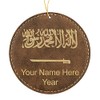LaserGram Personalized Christmas Ornament, Flag of Saudi Arabia, Faux Leather, Custom Laser Engraved Gift Idea (Round Shape, Rustic)