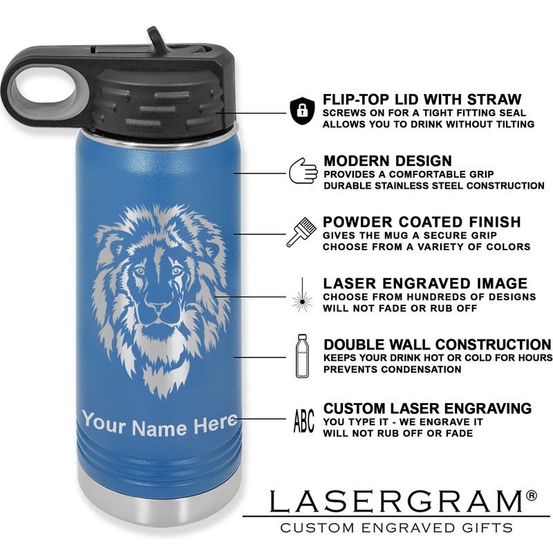 LaserGram Personalized Water Bottle, Karate Man, Stainless Steel Double Wall Vacuum Insulated with Flip Top Straw, Custom Engraved Gift (20oz / 590ml Dark Blue)