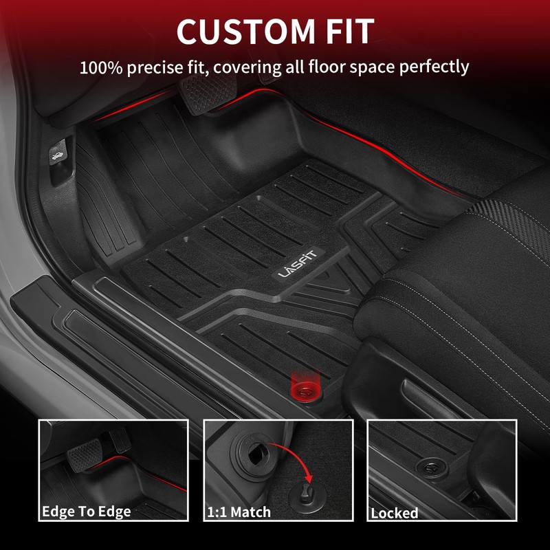 - CUSTOM FIT - State-of-the-art 3D laser scanning technology ensures the perfect custom fit to your car model with full coverage. LASFIT floor mats are precisely tailored for vehicle-specific floor carpets.