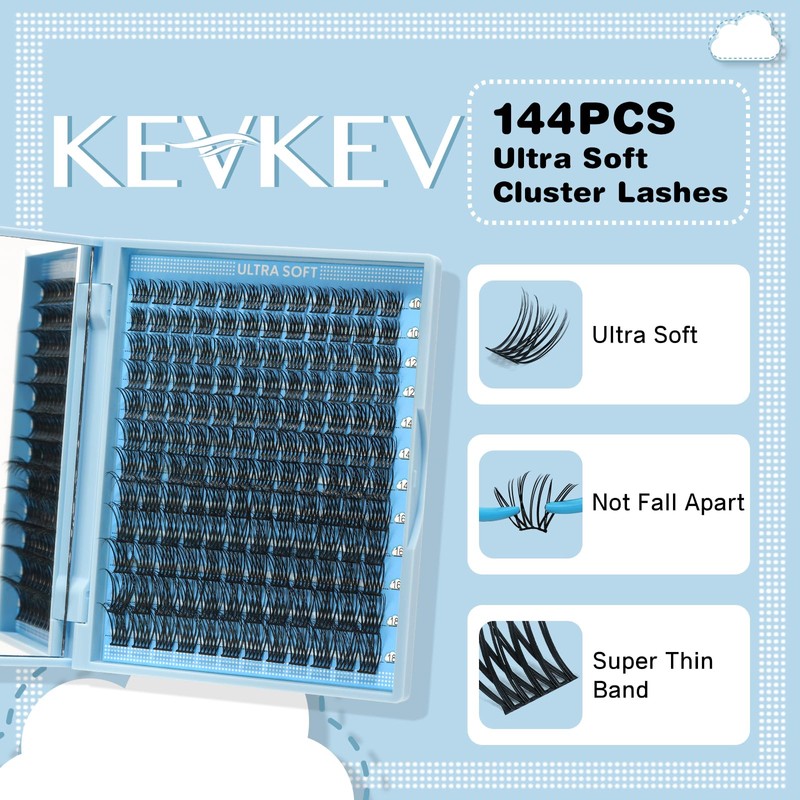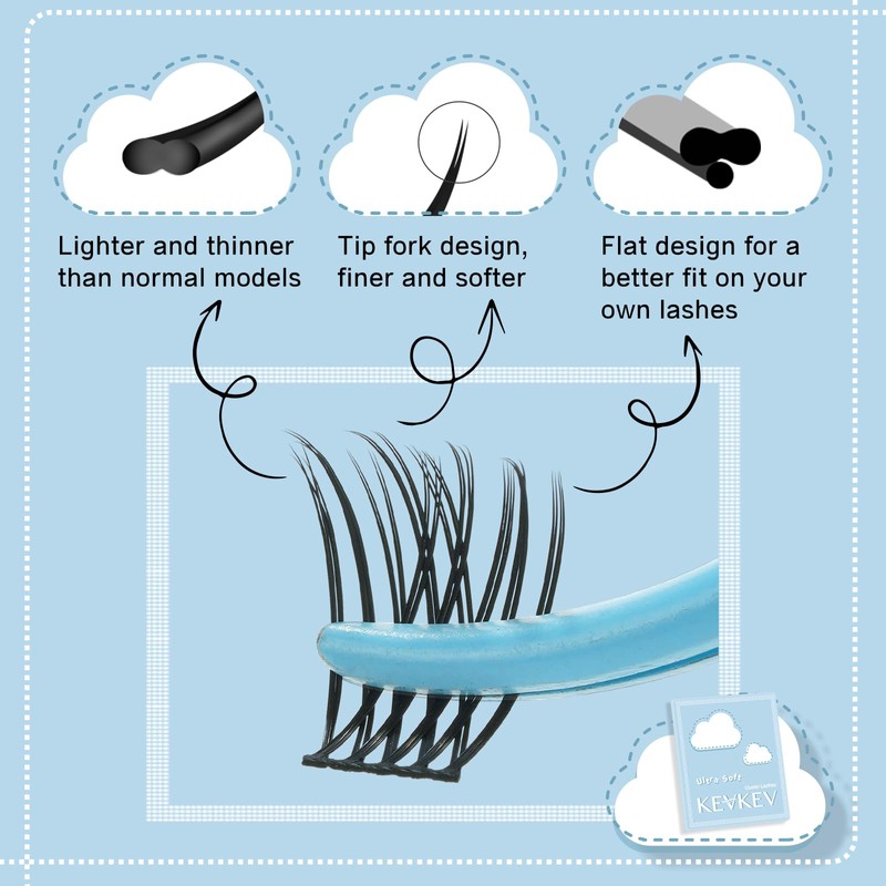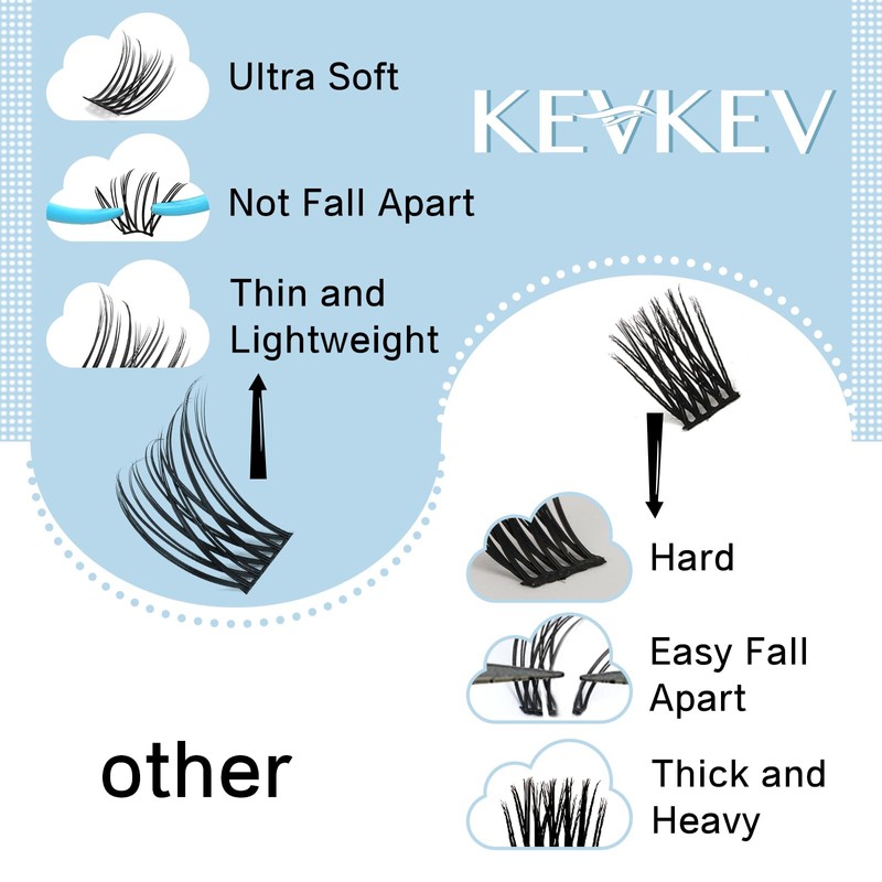 - Ultra Soft Lash Clusters: Experience the lightweight and thin design of KevKev ultra soft lash clusters. They are specifically crafted to be lighter and thinner than standard models, ensuring a comfortable and natural feel when worn.