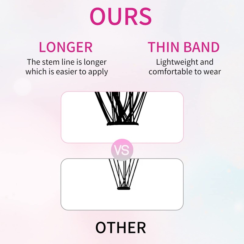 High-Temperature Resistance: New fixation method is adopted to keep the degree of the curl of cluster lashes stable and durable, even in a steam sauna, eyelashes can also keep curling, The roots of the eyelash clusters are strong and will not fall off, and can be reused 3-4 times with proper care, super cost-effective.