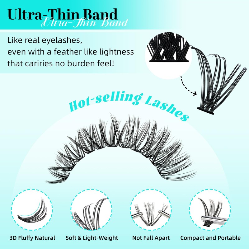 • 【DIY Eyelashes At Home】:With our diy eyelashes extension,you can remove individual lashes and create a new style at any time,a little change can make a big difference.Cluster eyelash extensions kit is so convenient that you can diy your own beauty at home instead of salon,save more money and time for makeup.