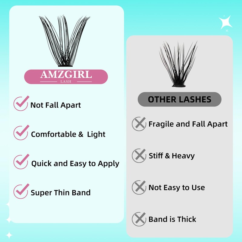 - 【Perfect Gift】AMZGlRL lash extensions make an ideal gift for cluster lashes enthusiasts seeking a natural look. Packaged stylishly and elegantly, they're perfect for birthdays, anniversaries, or any special occasion. Your loved ones will truly appreciate this thoughtful and practical gift.
