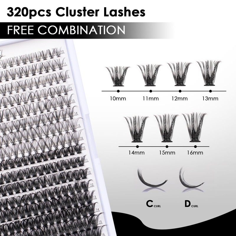 - 🌼INDIVIDUAL CLUSTER LASHES FOR DIY AT HOME:This tray contains 320 individual cluster lashes that are perfect for DIY application at home. These lashes are easy to put on and provide gorgeous results, and they don't easily fall apart. They take less time to apply than other types of lashes, which saves you time and money.