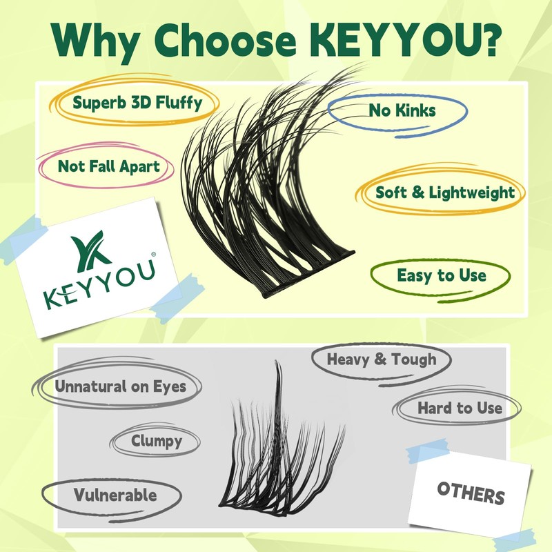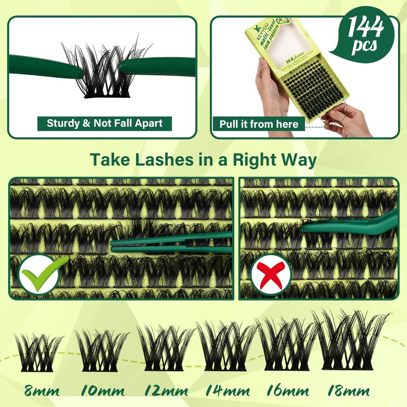 • Soft&Comfortable:KEYYOU lash clusters are made of high-quality imported materials which is super soft,lightweight and more comfortable to wear.144pcs in one box, contains lashes of 8-18mix different lengths to better meet your needs and save time and money.