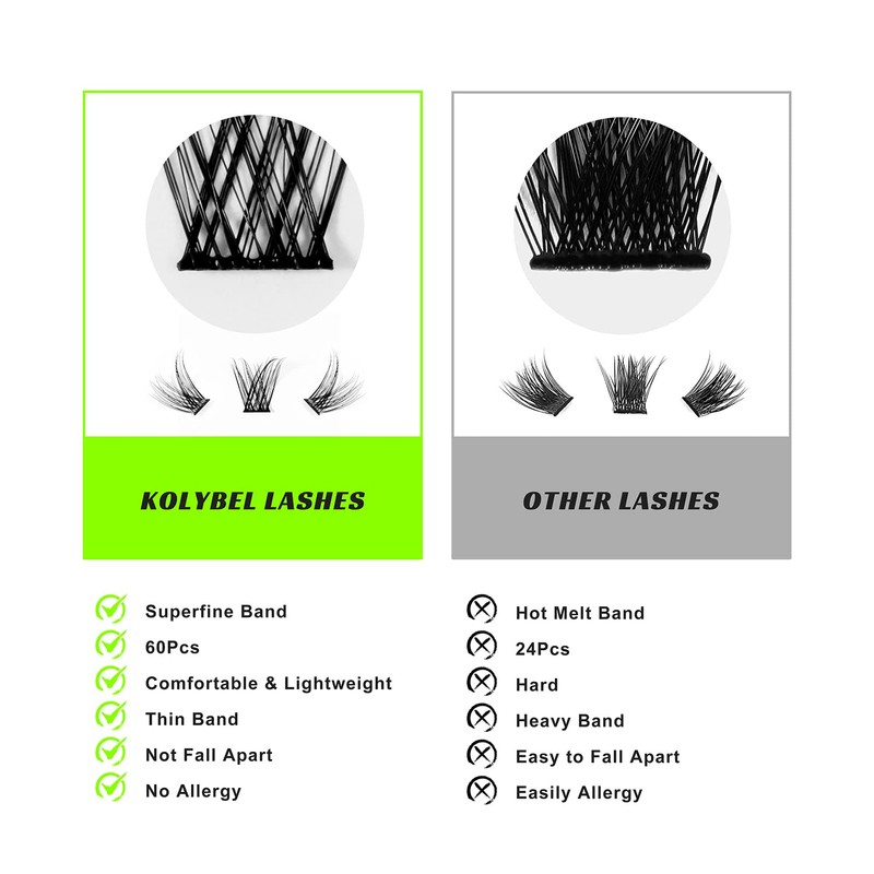 - 【Soft & Lightweight】:Kolybel DIY Lash Clusters use premium material and very lightweight.The band is super thin and lightweight on the eyes.Our lash clusters don’t fall apart. Individual cluster lashes can be reused up to 2-3 times with proper care.Comfortable to wear all day.
