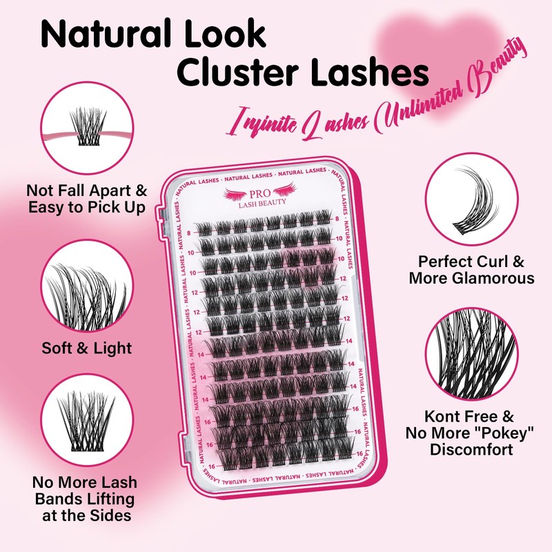 • Bring salon to your home: Pro LashBeauty Lash clusters are easy to apply. Divided individual Lashes into sections, easy to pick up and apply by yourself. You can apply the eyelashes with different lengths and styles according to different occasion. Save money from doing eyelash extensions. You will become a master of DIY lash extensions with a little practice!