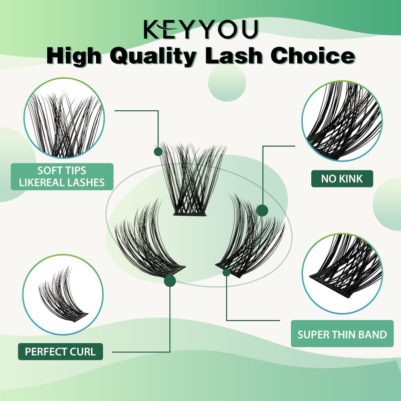 • 【Satisfactory After-sales Service】KEYYOU focuses on providing you with high-quality eyelash extension clusters and serving your beauty. If you have any questions about our individual false eyelashes, please feel free to contact us, we will reply you within 24 hours. Hope you enjoy DIY lash extensions!