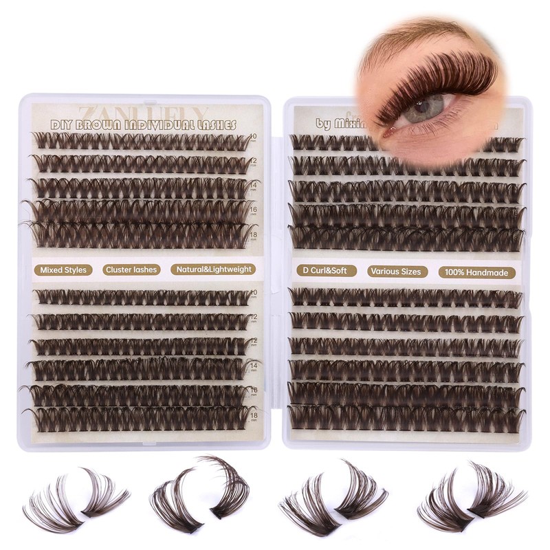- Brown Natural Lash Clusters: zanlufly selected brown colour, dark brown is more close to the natural eyelash colour, let your eyes more charming and beautiful!