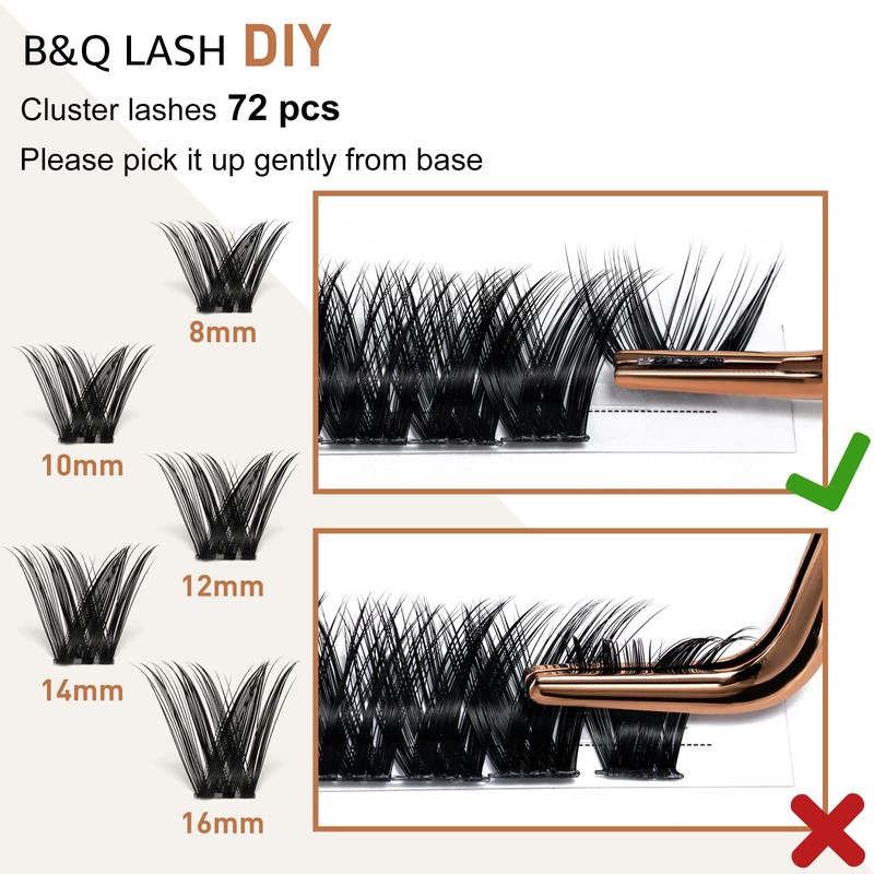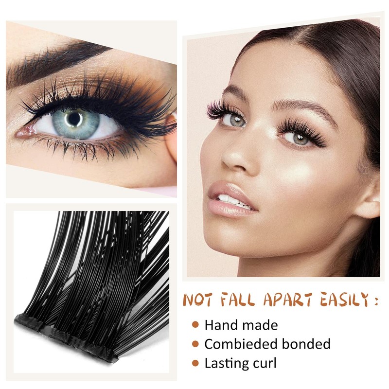 - 【Suitable to Wear】: Use a tweezer to pinch the band of cluster eyelashes and apply lash clusters below your natural lashes. You can barely feel the cluster lashes. The bottom of the clusters is flat and hardly noticeable. The lash band part will not stab your eyelid area when you blink. Bring you a perfect experience during lash application.