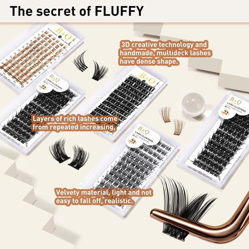 - 【Great Quality】: B&Qaugen cluster lashes look real, not plasticky, gorgeous results, and lash clusters do not easily fall apart. They are reusable with proper care. Easy to take off and these individual eyelashes will not be broken when getting them off the backing with tweezers. The lash clusters last for weeks. Soft, lightweight, vegan, knot-free, and matte dark.