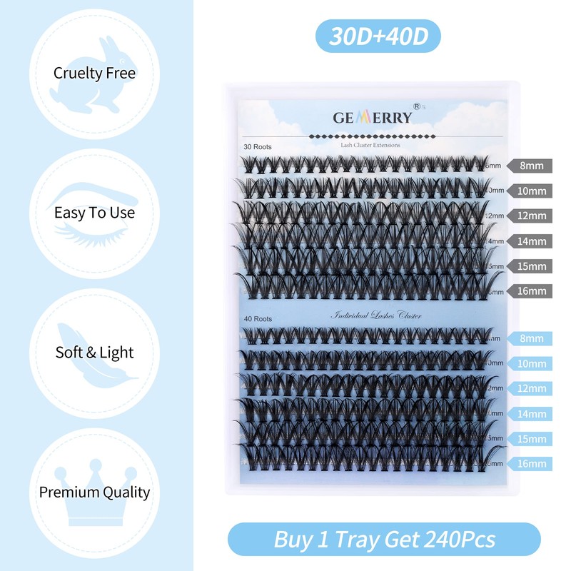 • AFFORDABLE: GEMERRY lash clusters With 240 pcs per box, these clusters are an economical choice for those who want to experiment with different lash looks. Their easy application makes them perfect for beginners who want to enhance their beauty routine. Whether you prefer a natural or dramatic look, GEMERRY Lash Clusters have got you covered.