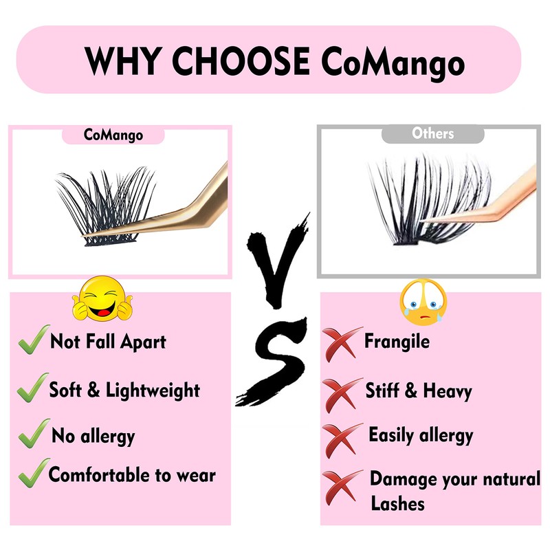 - 【Comforatable & Reusable】: Our CoMango brand mega volume cluster lashes have super thin band and they are very lightweight. Comfortable to wear the whole day and whole night. Individual cluster lashes are reusable.
