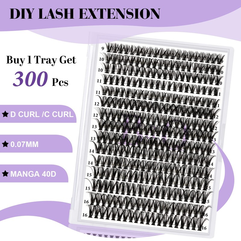 - 【DIY Individual Clusters at Home】: 300 clusters in one tray. You can apply cluster lashes at home by yourself. Easy to put lashes on with gorgeous results, and lash clusters do not easily fall apart. The complete clusters take less time to complete each eye. Now save so much money and time.