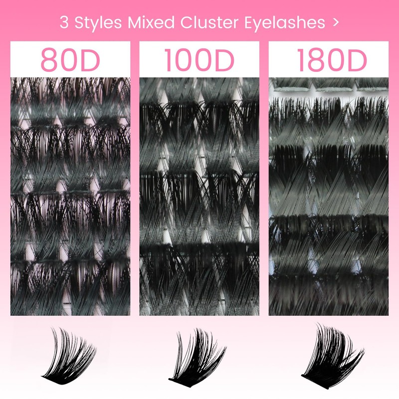 - [High-Quality 80D+100D+180D Lashes Clusters] Our eyelash extensions are made with high-quality materials. These cluster lashes are lighter, softer, and have a durable D curl, adding irresistible charm to your gaze. DIY eyelash extensions look very realistic and are easy to wear for a long time, even for beginners.