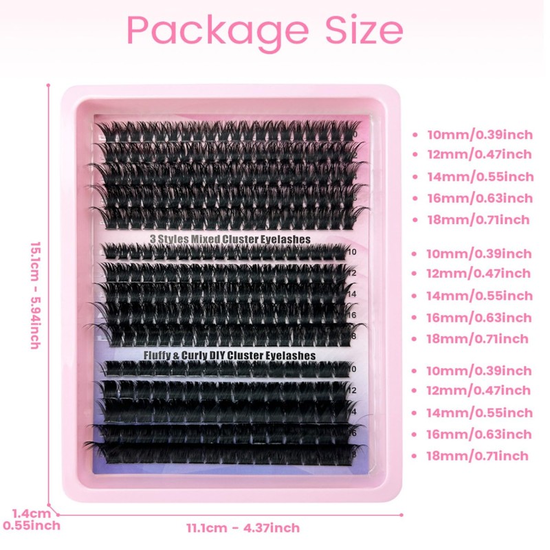 - [275Pcs D Curl Eyelash Extensions] Fluffy lash clusters pack includes thick and volume eyelash clusters in different densities: 80D, 100D, 180D, with lengths ranging from 10mm to 18mm. You can change your eyelash look anytime, anywhere. The lash tray is enough for you to use many times.
