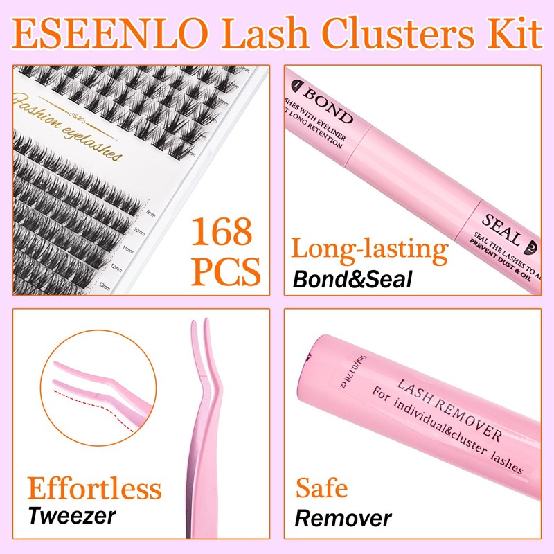 - LASH CLUSTERS KIT - Provides 168 pcs of false eyelashes, lash bonding and sealing, cluster lash tweezers and lash cluster brush,Achieve a natural cluster eyelash extensions look and save time and budget on trips to the lash extension salon