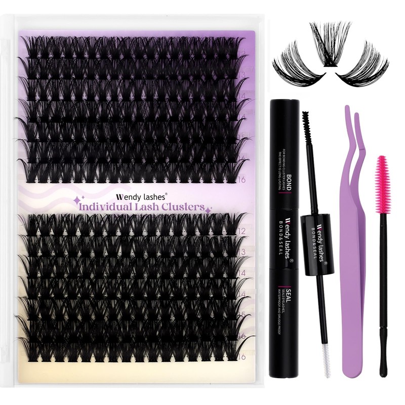 Wendy Lashes waterproof lash clusters kit is perfect for makeup enthusiasts, beginners, or anyone looking to elevate their eye beauty. Its compact size makes it convenient to carry around, allowing you to touch up your lashes anytime, anywhere. Give your eyes the luxurious treatment they deserve with Wendy Lashes Falsies Eyelash Extension Kit – order yours now and experience the transformative power of individual cluster lash extensions!