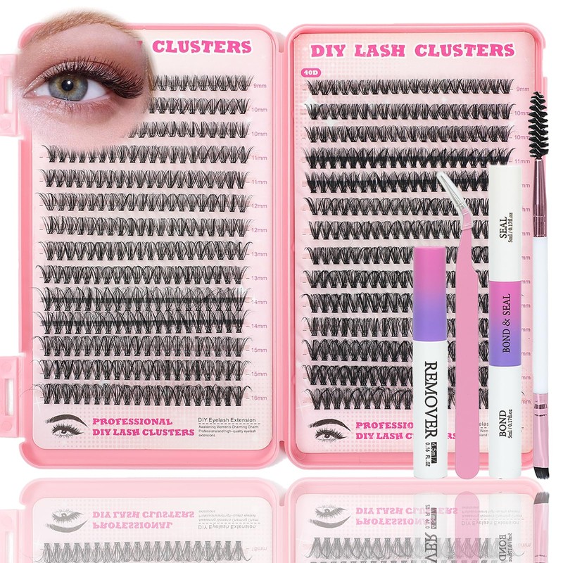 • Lash Clusters Kit Includes: We match different density 30D-80D and length 9-16mm eyelash clusters together, abundant items for your option and daily use, with lash bond and seal, tweezer, brush, you can DIY at home, save time and money