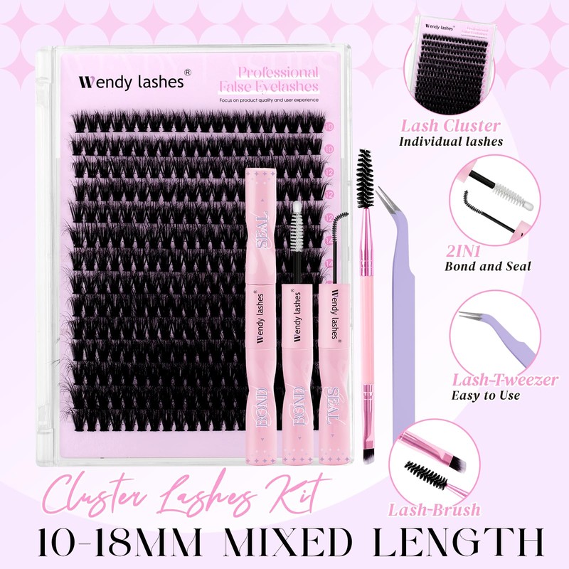 - Beginner-Friendly Application: Lash clusters kit Includes an easy-to-use bond and seal for a strong, long-lasting hold and a pro tweezer for effortless, precise cluster placement every time. Perfect for lash novices.