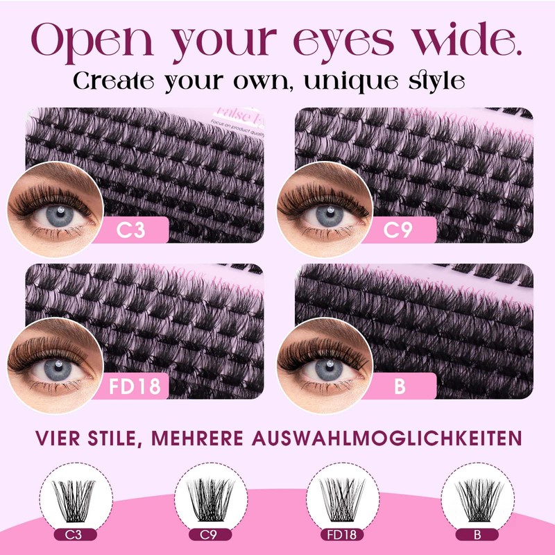 - 4 Style Options:Our lash extension kit offers 4 professional styles (C3, C9, FD18, B) with 10-18mm mixed lengths for seamless transitions from natural daytime to glamorous evening looks. The wispy textured clusters add dimension, perfect for creating customized enhancements - whether subtle office wear or bold festival volume, ideal for both beginners and lash artists.