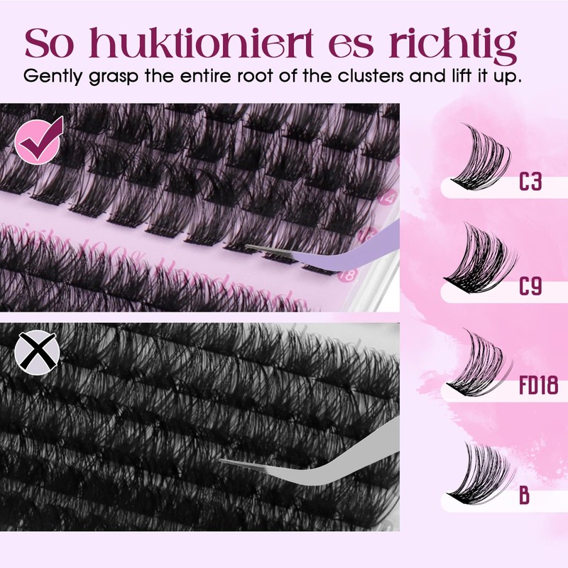 - Upgraded Technique, Reinforced Roots: Secondary reinforcement of the eyelash clusters roots prevents them from falling out or becoming deformed. Cluster lash extension are fluffy and curled, and will not fall out even when bathing or swimming.