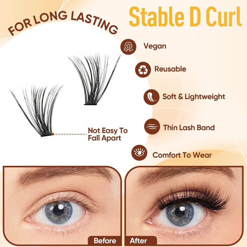 - Comfortable Soft Band: Designed with soft, lightweight, knot-free materials, these lash clusters are comfortable and natural-looking to wear all-day. You'll forget you're wearing lashes, allowing you to enjoy the beauty without any discomfort or heaviness on your eyelids. Suitable for anyone who wants to have more beautiful and impressive eyelash extensions.