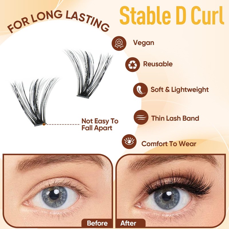 - Comfortable Soft Band: Designed with soft, lightweight, knot-free materials, these lash clusters are comfortable and natural-looking to wear all-day. You'll forget you're wearing lashes, allowing you to enjoy the beauty without any discomfort or heaviness on your eyelids. Suitable for anyone who wants to have more beautiful and impressive eyelash extensions.