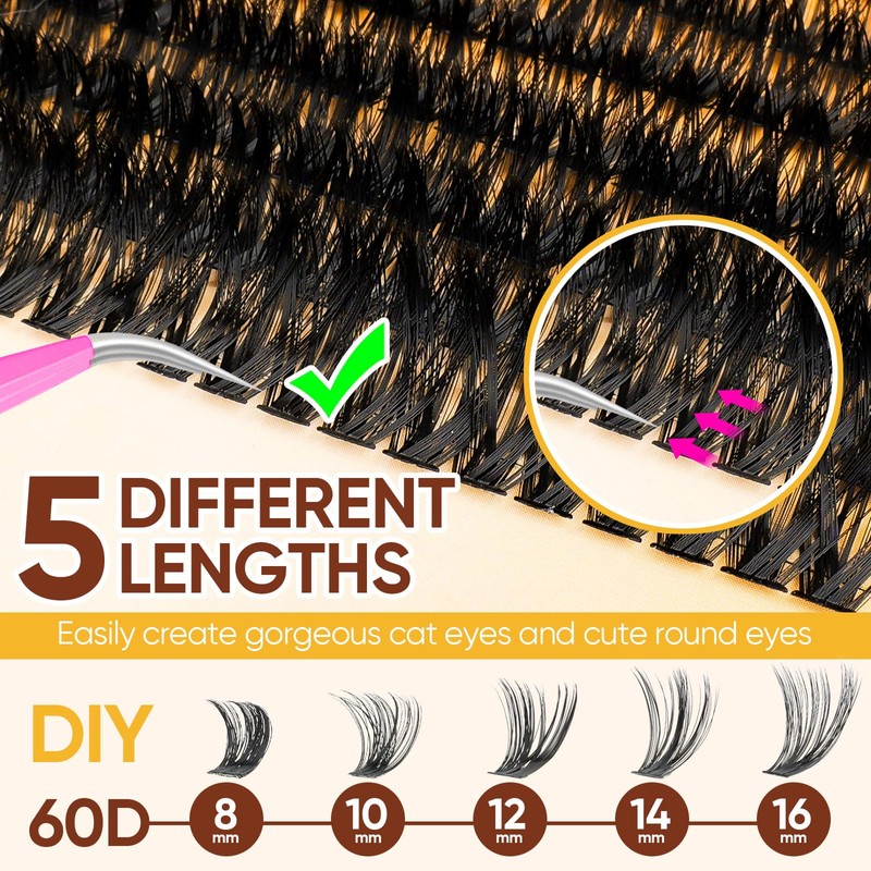 - Natural D Curl Lash Clusters: Wispy eyelash clusters provide you with 320pcs different volume 60D and different lengths(10-12-14-16mm). Wispy natural lash clusters fit perfectly to your eyes, you can use these eyelashes in various occasions, such as work, date, and party. Easy to get the lash extension look!