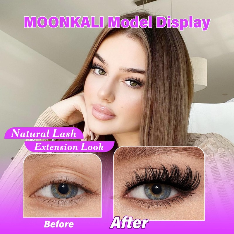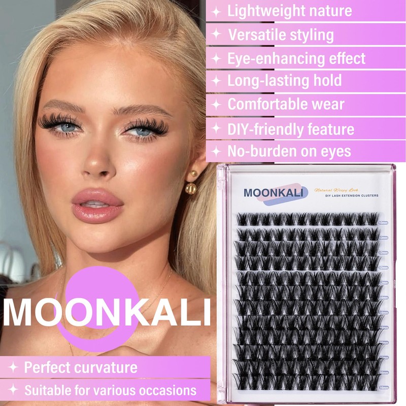 - Soft and comfortable lash clusters: MOONKALI cluster lashes are made of professional mink-like fiber material, which is soft and resistant to deformation. The thin cluster eyelash extensions band design makes them even more lightweight and placing no burden on the eyes
