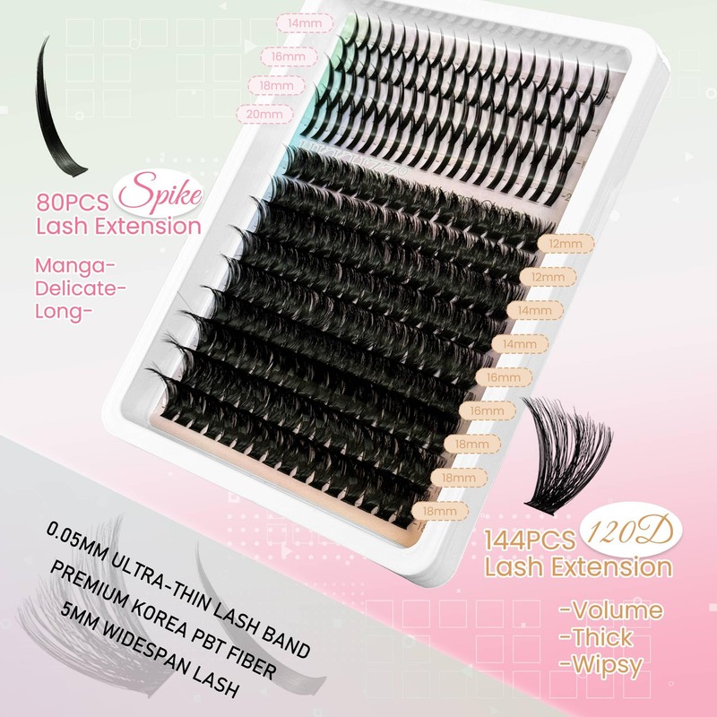 - Lash Clusters With Spikes are designed to blend seamlessly with your real lashes, creating a soft, wispy finish. The invisible lash band ensures a natural appearance, while the mixed lengths add just the right amount of dimension to make your eyes stand out