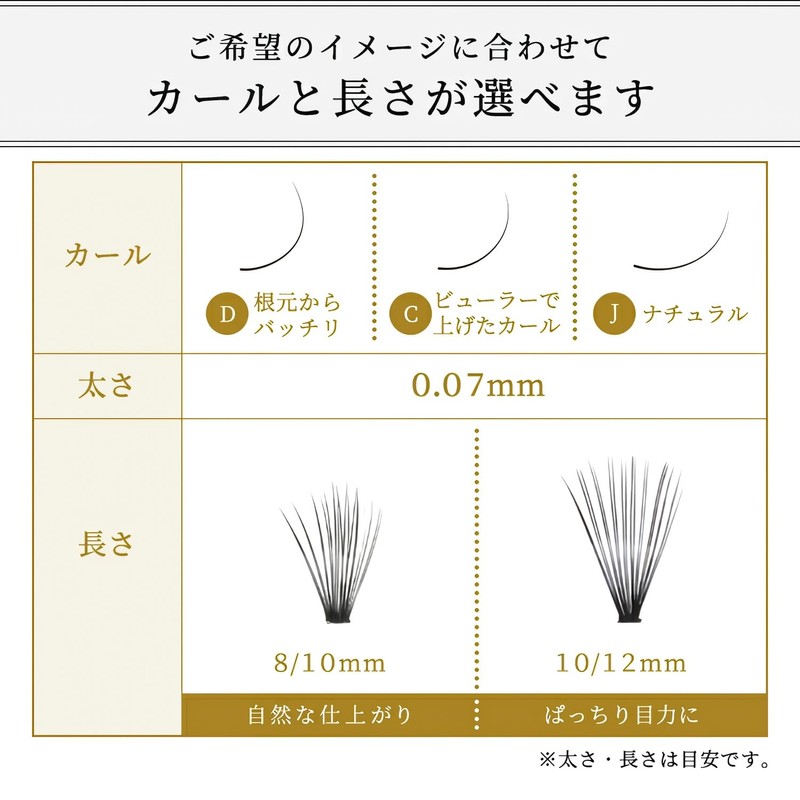 - Choose from lengths and curls: Available in popular j curls, c curls, and d curls. Available in 2 lengths, 8-10mm and 10-12mm It contains a lot of 60 bundles, so it is recommended for practice