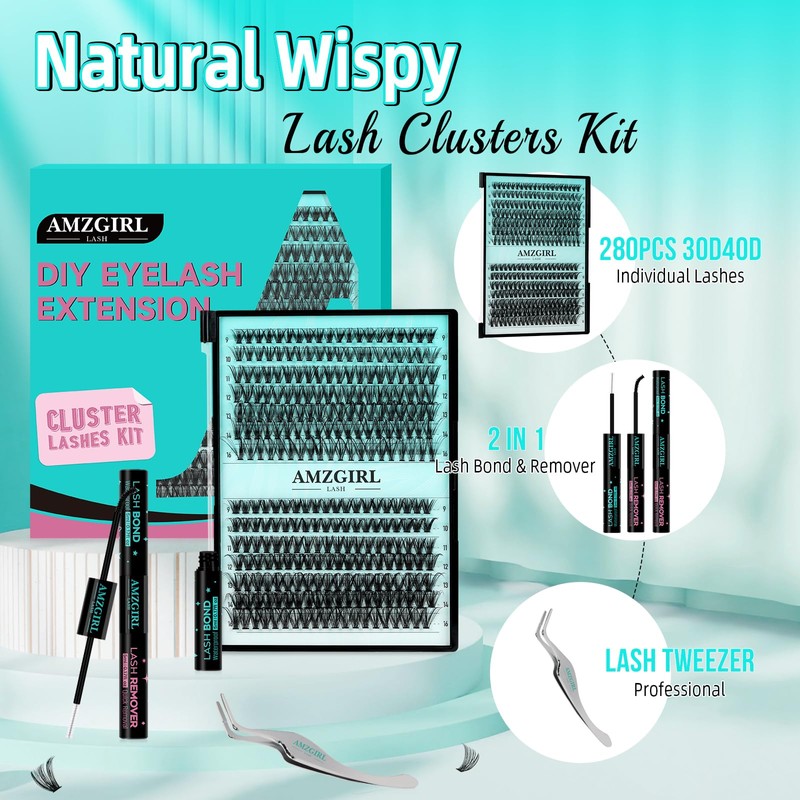 - DIY Eyelash Extension Kit:The lash extension kit includes 30D 40D Mixed 9-16mm cluster lashes*280pcs, lash bond and remover*1, and lash applicator*1. Contains all the tools you need from wearing to removal. Easily get luxurious eyelashes clusters effects.