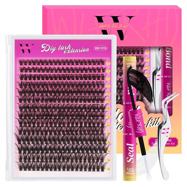 - DIY Eyelash Extension Kit:The lash extension kit includes 50D Mixed 9-16mm cluster lashes*280pcs, lash bond and seal*1, and lash applicator*1. Contains all the tools you need from wearing to removal. Easily get luxurious eyelashes clusters effects.