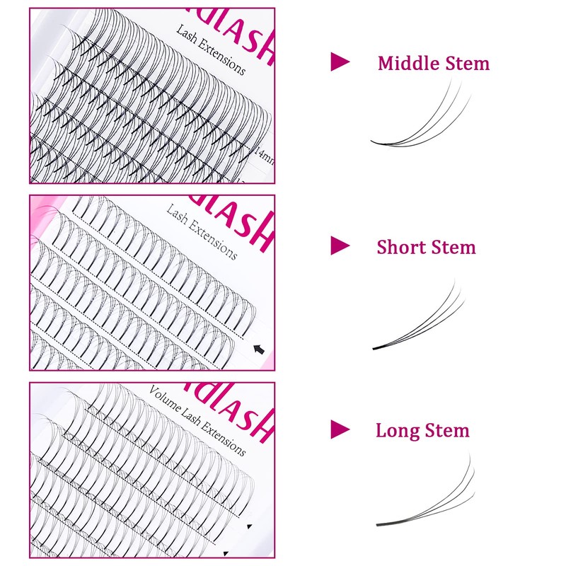 FADLASH Premade Fans Short Stem Details:Fans: 3D 4D 5D 6DThickness: 0.07 0.10Curl: C DSingle Length: 10-20mmMixed Length:8-14mm/15-20mmColor: BlackQuantity:3D (240 fans), 4D 5D 6D (120 fans)FADLASH Premade Fans Eyelash Extensions Advantage:1. Professional: FADLASH was founded by a professional eyelash team. The premade fans are made of Korean high-quality PBT material, and the style is fashionable, which is more suitable for European and American eyes.2. Many Choices: FADLASH premade lash fans are feather-light and more comfortable for the client. Matte color makes them appear more natural. Our pre-made volume lashes also have flexible size lengths and curls.3. Fill: FADLASH premade eyelash extensions fans help fill in the gaps between sparse natural lashes.4. Thin Base: Each premade fan has been carefully handmade by a lash artist, not using any machine, cleaned and very small base, Light glue at the stems, Proper apply can get the best retention.5. Stable Curl: Baking technology was added to make the curvature more durable and softer. FADLASH premade lash fans are the best choice for lash extensions.6. Lightweight: Less strain and weight on the premade lash than the 0.20 mm lashes that are most often used in classic lash extensions.  Causeless damage to the natural lash, because of the lighter weight.7. Save Time: Advance production of good fans, without you manual production fans, can choose according to their own needs, can be grafted directly. Easy access to stunning eyes.8. Inspection: Each lash is strictly checked by the quality inspection department from the material selection to product curvature and durability to ensure that the eyelashes can perfectly fit your eyelids and are comfortable and natural to wear.
